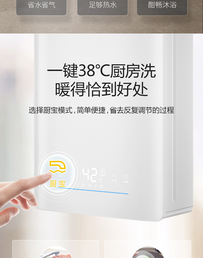 惠而浦燃气热水器JSQ25-T13VA1 所属分类: 热水器 颜色: 白色 功能卖点 无级变升水气双调防冻保护高抗风厨宝模式曲面玻璃屏幕